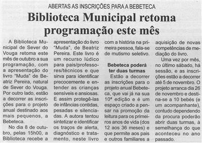 Biblioteca Municipal retoma programação este mês : abertas as inscrições para a Bebeteca / Beira vouga