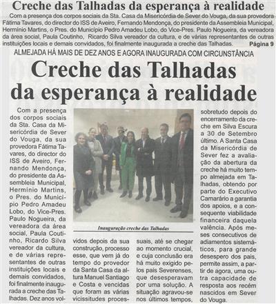 Creche das Talhadas : da esperança à realidade : almejada há mais de dez anos e agora inaugurada com circunstância / Beira Vouga