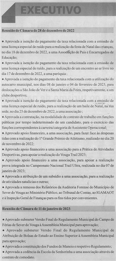 Reunião de Câmara de 28 de dezembro de 2022 ; Reunião de Câmara de 11 de janeiro de 2023