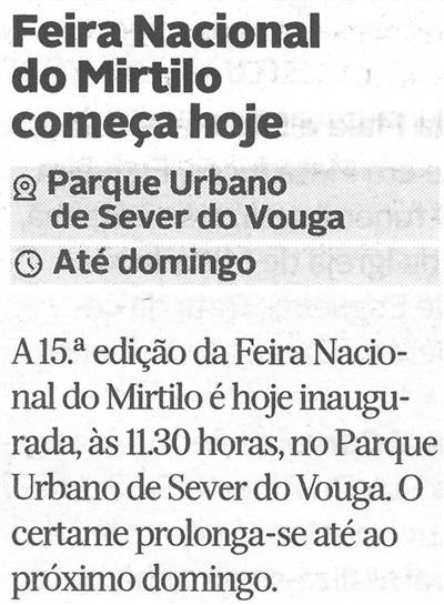 Sever do Vouga : Capital do Mirtilo ; XV Feira Nacional do Mirtilo ; 15.ª edição da Feira Nacional do Mirtilo