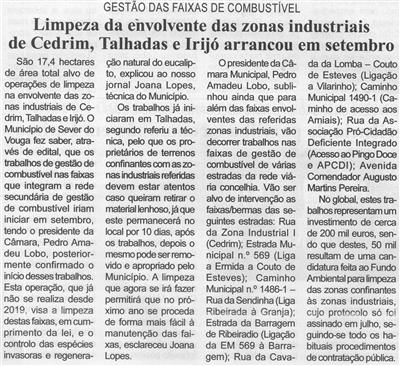 Limpeza da envolvente das zonas industriais de Cedrim, Talhadas e Irijó arrancou em setembro : gestão das faixas de combustível / Beira Vouga
