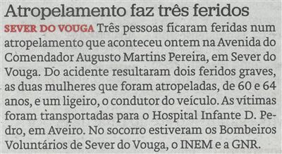 Atropelamento faz três feridos : Sever do Vouga / Jornal de Notícias