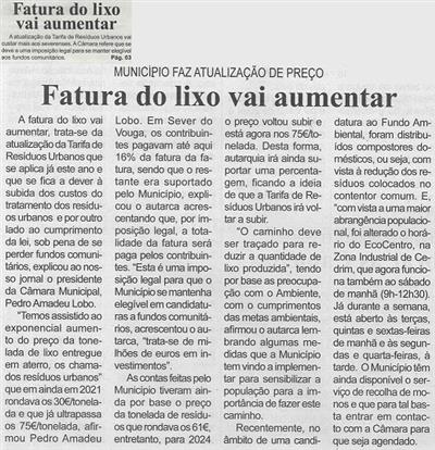 Fatura do lixo vai aumentar : Município faz atualização de preço / Beira Vouga