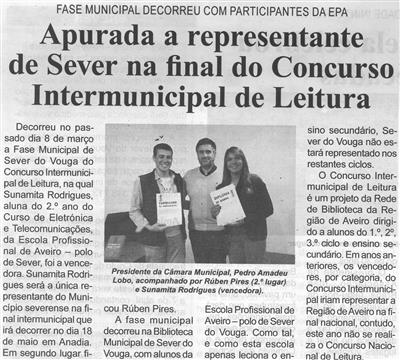 Apurada a representante de Sever na final do Concurso Intermunicipal de Leitura : fase municipal decorreu com participantes da EPA / Beira Vouga