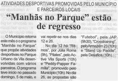 "Manhãs no Parque" estão de regresso : atividades desportivas promovidas pelo Município e parceiros locais / Beira Vouga