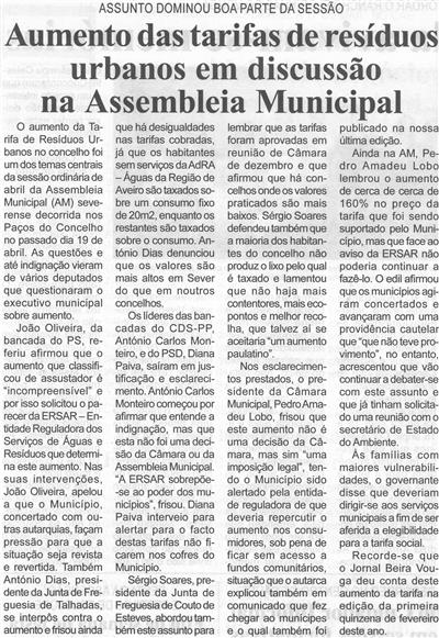 Aumento das tarifas de resíduos urbanos em discussão na Assembleia Municipal : assunto dominou boa parte da sessão / Beira Vouga
