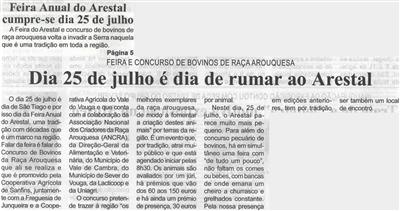 Dia 25 de julho é dia de rumar ao Arestal : feira e concurso de bovinos de raça arouquesa / Beira Vouga