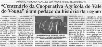 "Centenário da Cooperativa do Vale do Vouga" é um pedaço da história da região : exposição promovida pela LANCE está patente no salão da Cooperativa / Beira Vouga