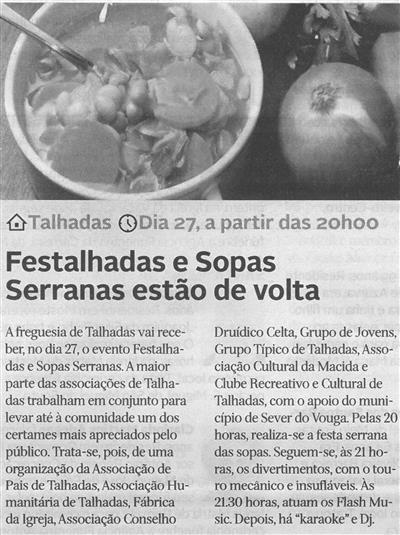 Festalhadas e Sopas Serranas estão de volta / Diário de Aveiro