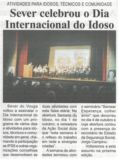 Sever celebrou o Dia Internacional do Idoso : atividades para idosos, técnicos e comunidade / Beira Vouga
