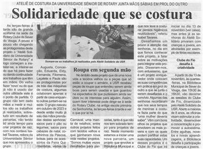 Solidariedade que se costura : ateliê de costura da Universidade Sénior de Rotary junta mãos sábias em prol do outro / Beira Vouga