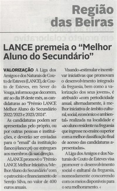 Prémio LANCE Melhor Aluno do Secundário 2022-2023 e 2023-2024