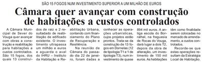 Câmara quer avançar com construção de habitações a custos controlados : são 15 fogos num investimento superior a um milhão de euros / Beira Vouga