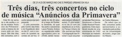 Três dias, três concertos no ciclo de música "Anúncios da Primavera" : de 21 a 23 de março no CAE e Parque Urbano da Vila / Beira Vouga