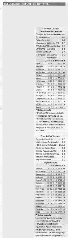 Resultados do futebol distrital : II Divisão Distrital : Zona Norte : Zona Sul / Diário de Aveiro