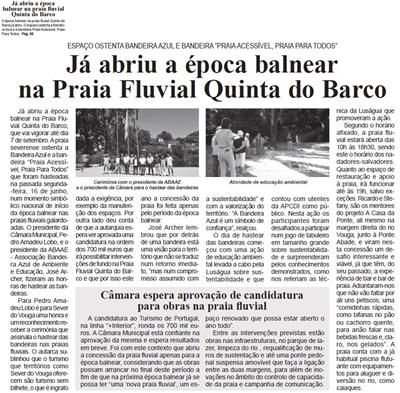Já abriu a época balnear na Praia Fluvial Quinta do Barco : espaço ostenta Bandeira "Praia Acessível", Praia Para Todos" / Beira Vouga