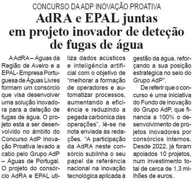 AdRA e EPAL juntas em projeto inovador de deteção de fugas de água : concurso da ADP inovação proativa / Beira Vouga