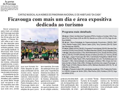Ficavouga com mais um dia e área expositiva dedicada ao turismo : cartaz musical alia nomes do panorama nacional e os habituais "da casa" / Beira Vouga
