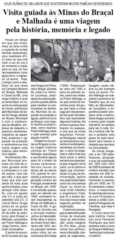Visita guiada às Minas do Braçal e Malhada é uma viagem pela história, memória e legado : hoje ruínas de um labor que sustentava muitas famílias severenses / Beira Vouga
