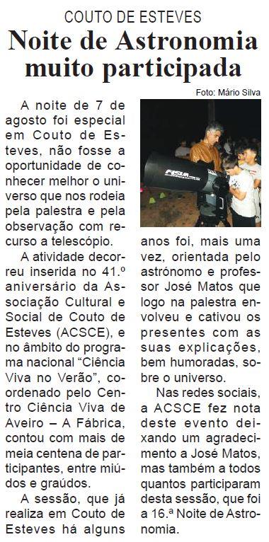 Noite de Astronomia muito participada : Couto de Esteves / Beira Vouga