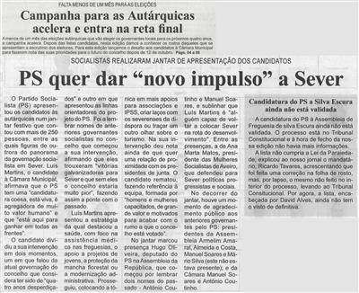 PS quer dar "novo impulso" a Sever : socialistas realizaram jantar de apresentação dos candidatos / Beira Vouga