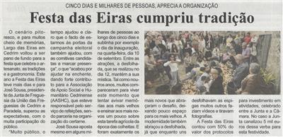 Festa das Eiras cumpriu tradição : cinco dias e milhares de pessoas, aprecia a organização / Beira Vouga