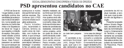 PSD apresentou candidatos no CAE : social-democratas concorrem a todos os órgãos / Beira Vouga