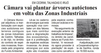 Câmara vai plantar árvores autóctones em volta das Zonas Industriais : em Cedrim, Talhadas e Irijó / Beira Vouga