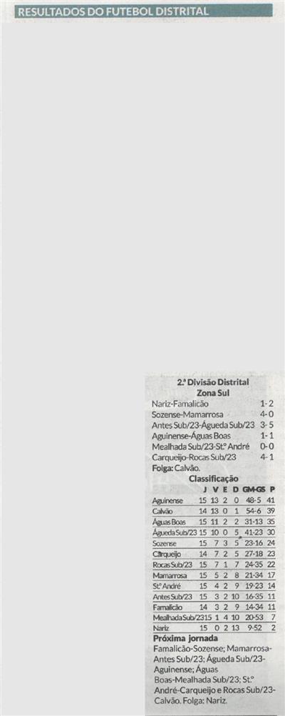 Resultados do futebol distrital : II Divisão Distrital : Zona Sul / Diário de Aveiro