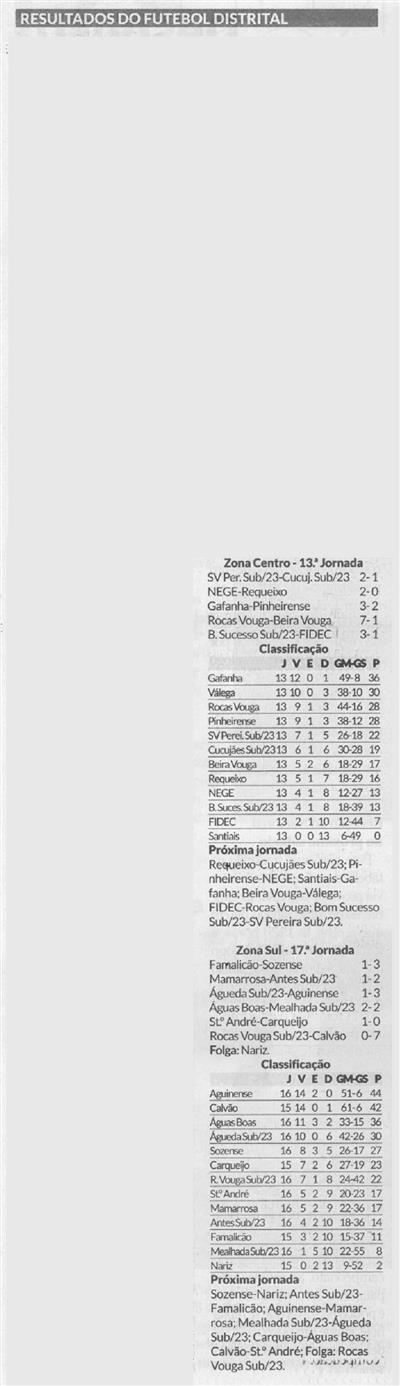 Resultados do futebol distrital : II Divisão Distrital : Zona Centro : Zona Sul / Diário de Aveiro