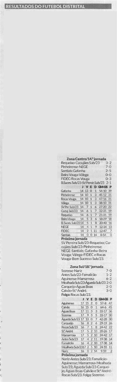 Resultados do futebol distrital : II Divisão Distrital : Zona Centro : Zona Sul / Diário de Aveiro
